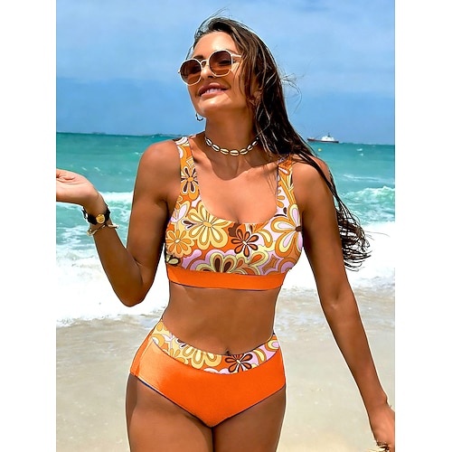 Costume da bagno a due pezzi bikini da donna leopardato audace slim senza schienale per vacanze al mare grafica floreale scollo a V senza maniche