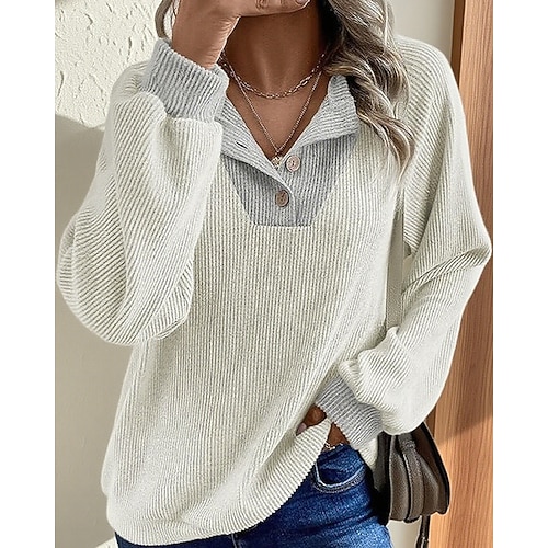 Per donna Felpa Maglione Moda Streetwear Casual Tinta unica Colletto a Camicia Patchwork Lavorato a maglia Manica Lunga Top Regolari Maglia Quotidiano Ferie Uscire Nero Bianco Autunno Inverno