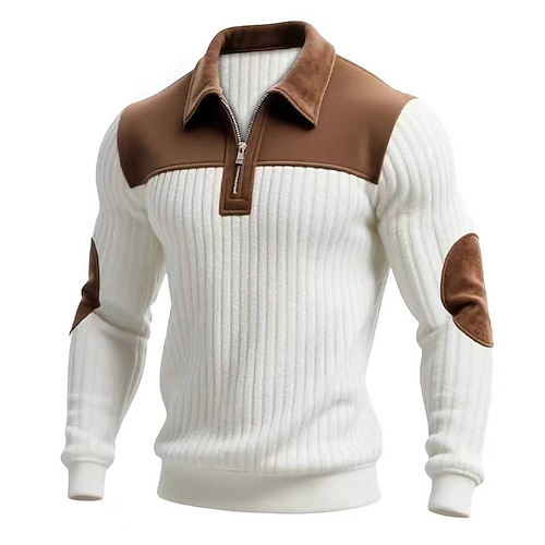Per uomo Maglia Felpa con cappuccio Felpa con zip corta Maglia a coste Aalbicocca Nero Bianco Verde militare Colletto Mao Semplice Patchwork Testurizzato Casuale Quotidiano Sport Outdoor Vintage