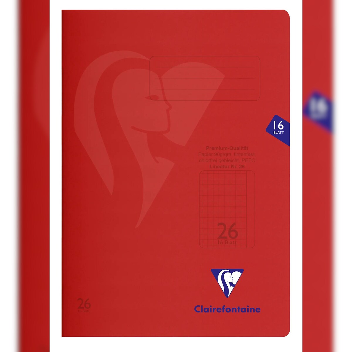 Clairefontaine 25x S'coolbook, Schulheft A4 Lineatur 26, kariert mit Rand, 16 Blatt 90g, transparenter Umschlag aus PP, rot - 333226C