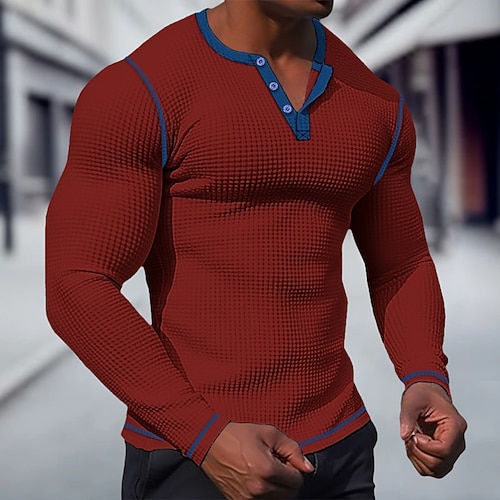 Per uomo maglietta Camicia Henley Waffle Camicia Henley T-shirt Maglia a maniche lunghe Liscio Henley Strada Da mare Manica lunga Abbigliamento Poliestere Di tendenza Originale Essenziale