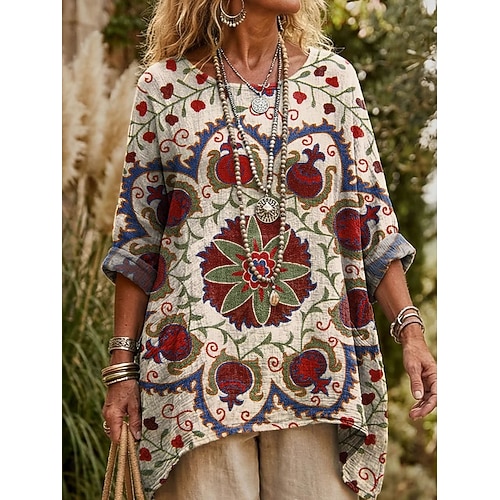 Per donna Camicia Blusa Floreale Grafico Vintage Quotidiano Elegante Manica Lunga Girocollo Top Regolari Quotidiano Uscire Stampato Blu Arancione Verde Beige Estate Primavera Autunno