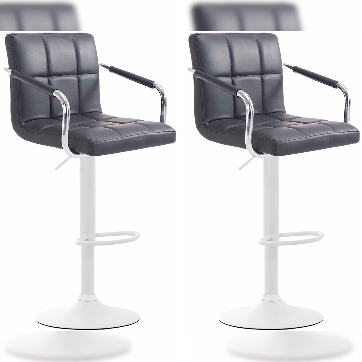 DELUKE 2er Set Barhocker MINOR - Kunstleder Schwarz 54x46x91 cm Weiß | Barstuhl Höhenverstellbar Mit Lehne Drehbar Tresenhocker Tresenstuhl Kneipenhocker