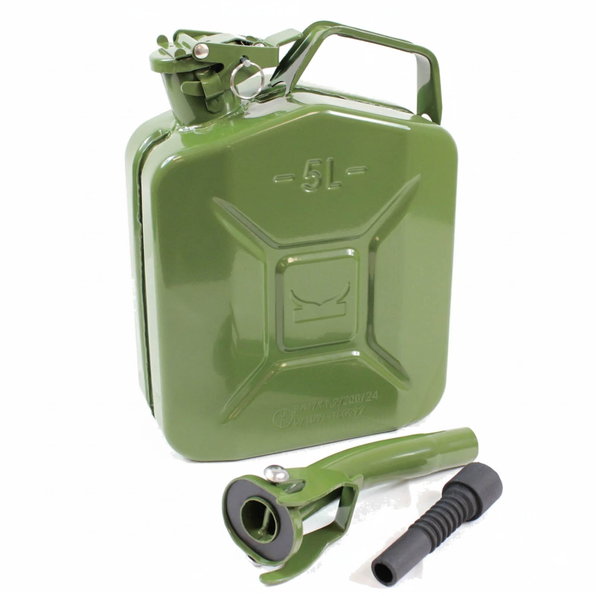 1 x Kraftstoffkanister Metall Benzinkanister 5 Liter - Olivgrün - UN-Zulassung inkl. Ausgießer