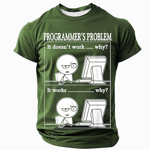 Maglietta per programmatori da uomo - Divertente maglietta umoristica da ufficio sul lavoro di coding - Non funziona perché funziona perché