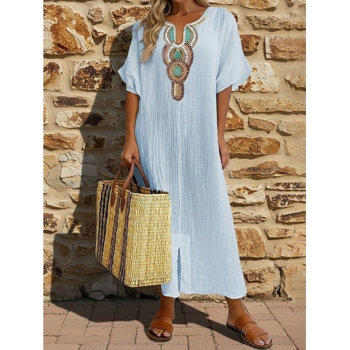 Per donna Abito Midi Finto cotone e lino Moderno Quotidiano Vacanza Uscire Vestibilità comoda Floreale Mezza Manica Scollo a V Bianco Giallo Rosa Grigio chiaro Estate Primavera