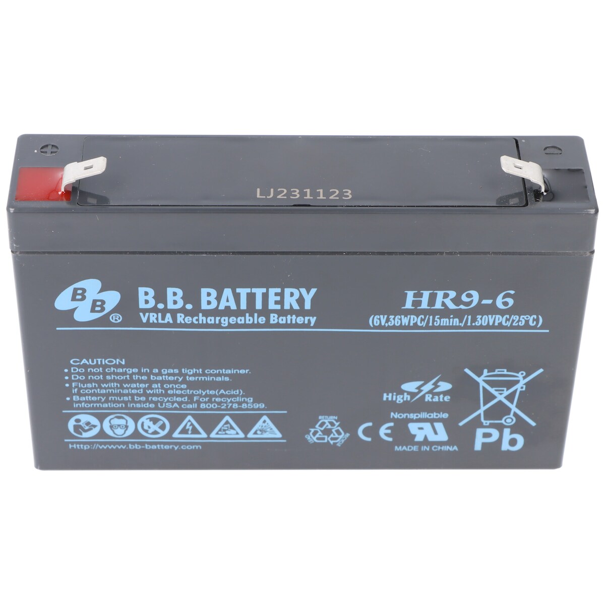 Bleiakku B.B. Battery HR9-6 Akku, 6 Volt 9Ah, Abmessungen 151 x 34 x 94mm, mit Faston 6,3mm Steckkontakte