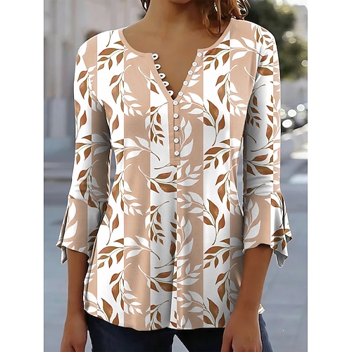 Per donna Camicia Foglia Foglie Elegante Manica 3/4 Girocollo Top Regolari Quotidiano Ferie Stampato Blu Verde Estate