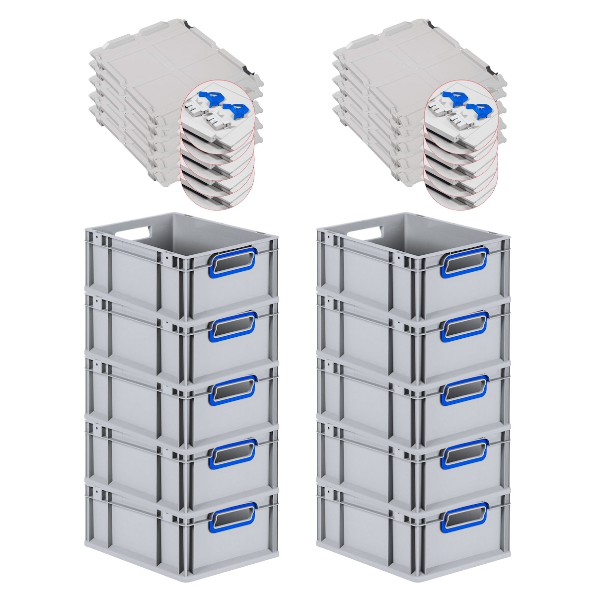 PROREGAL 10x Eurobox NextGen Color mit Scharnierdeckel & Verschlüssen | HxBxT 17x30x40cm | 16 Liter | Griffe blau offen | Glatter Boden