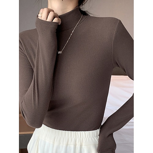 Per donna Felpa Elegante Casual Morbido Colore Puro A Coste Dolcevita Lavorato a maglia Manica Lunga Top Regolari Maglia All'aperto Quotidiano Weekend Nero Bianco Autunno Inverno