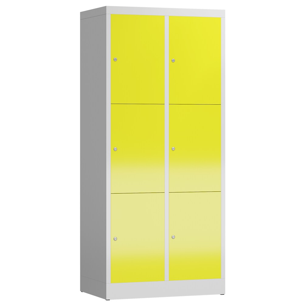 ClassiX Schließfachschrank, 2 Abteile à 3 Fächer, 1800 x 800 x 500 mm, lichtgrau/zinkgelb