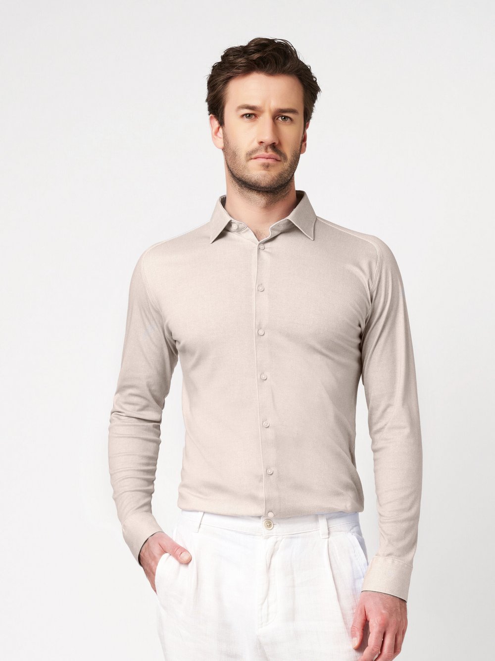DESOTO Jerseyhemd Herren Slim Fit Baumwolle beige, XXL