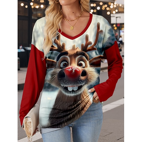 maglietta da donna moderna casual stampa manica lunga top regolari scollo a V quotidiano rosso blu marrone azzurro autunno inverno