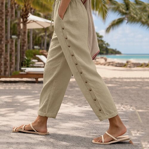 Per donna Pantaloni in cotone e lino Chinos Streetwear Casual Lunghezza intera Vita media Tinta unica Coulisse Tasca Confortevole Traspirante Micro-elastico Quotidiano All'aperto Streetwear Blu Nero
