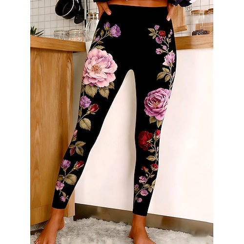 Per donna Leggings Leggings comodi Vacanza Vintage Essenziale Lunghezza intera Vita Alta Grafico Rosa Stampa Comodità Confortevole Alta elasticità Vacanza Casuale Quotidiano Nero Viola Primavera