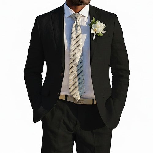 Uomo Casuale Matrimonio in Spiaggia Completi in Lino Bavero classico Nero Bianco Moda Leggero Tinta unita Vestibilità su misura 2 pezzi Monopetto Due Bottoni