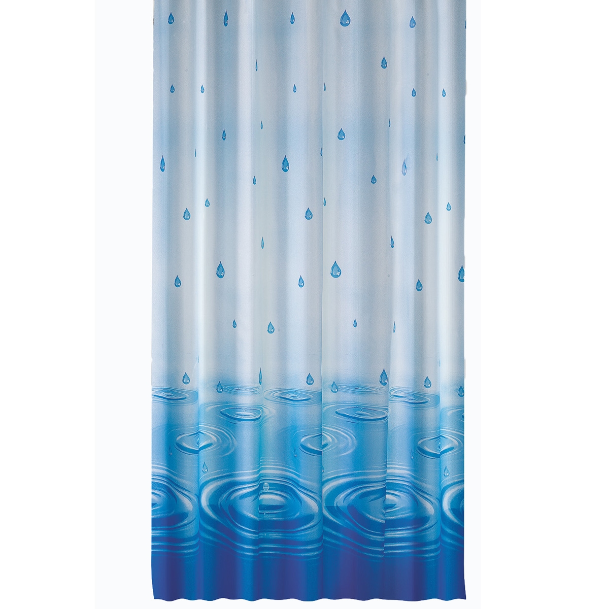 Ekershop Textil Duschvorhang Wassertropfen Blau 240x200cm Weiß ink.15 Ringe