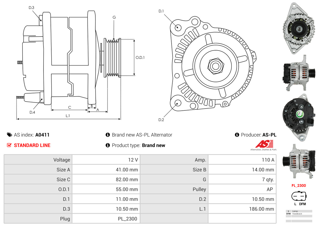 AS-PL Generator A0411 12V 110A für FIAT IVECO 504009977 71723391 71723392