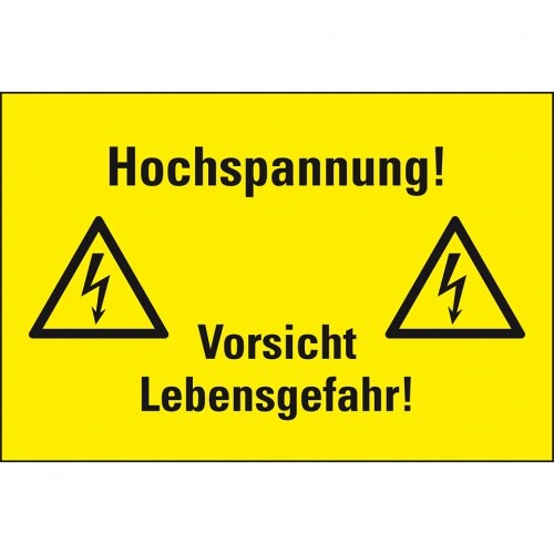 Schild I Warn-Kombischild Hochspannung! Vorsicht Lebensgefahr!, Resopal, 300x200mm, ASR A1.3, DIN EN ISO 7010 W012