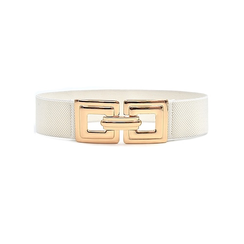 cintura elastica in nylon da donna con fibbia quadrata dorata, disponibile in più colori, perfetta per occasioni casual e formali