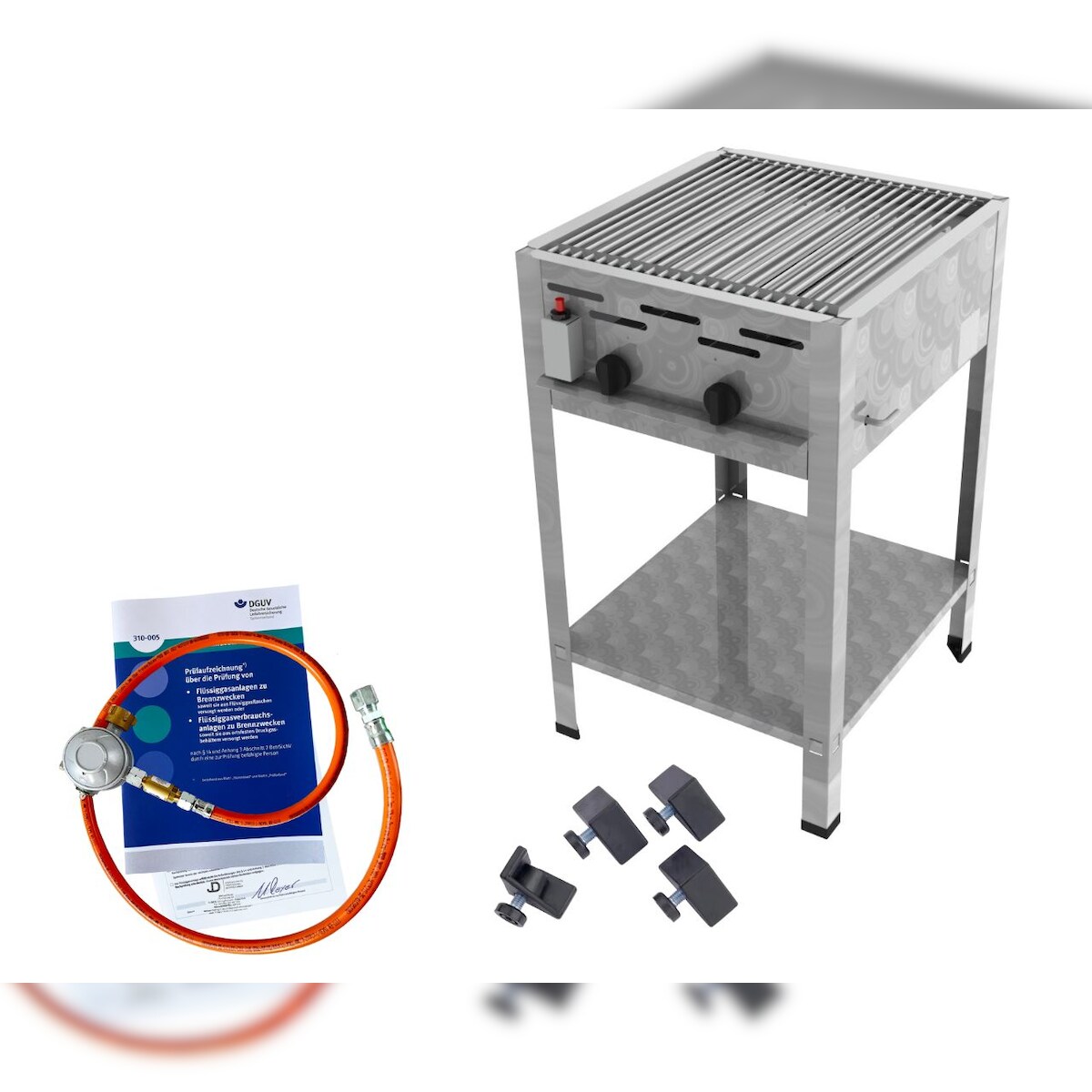 ChattenGlut Gasbräter 2-flammig 7,3kW Standgerät Einzelne Edelstahlstäbe als Rost mit DGUV