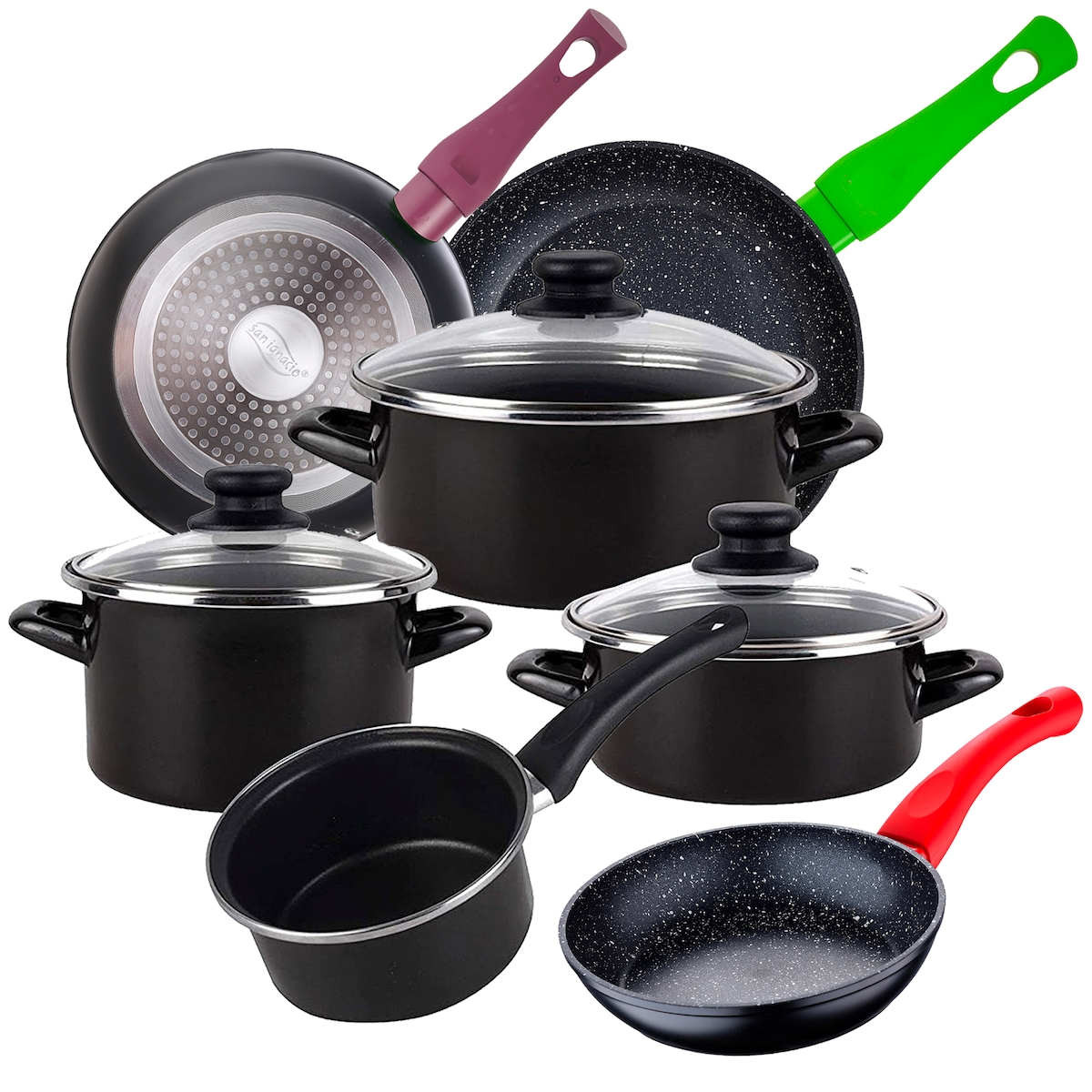 Magefesa Kenia - 14/16/16/20 cm großes Kochgeschirrset aus verglastem Stahl mit 18/22/26 cm großen Bratpfannen aus geschmiedetem Aluminium Induktion