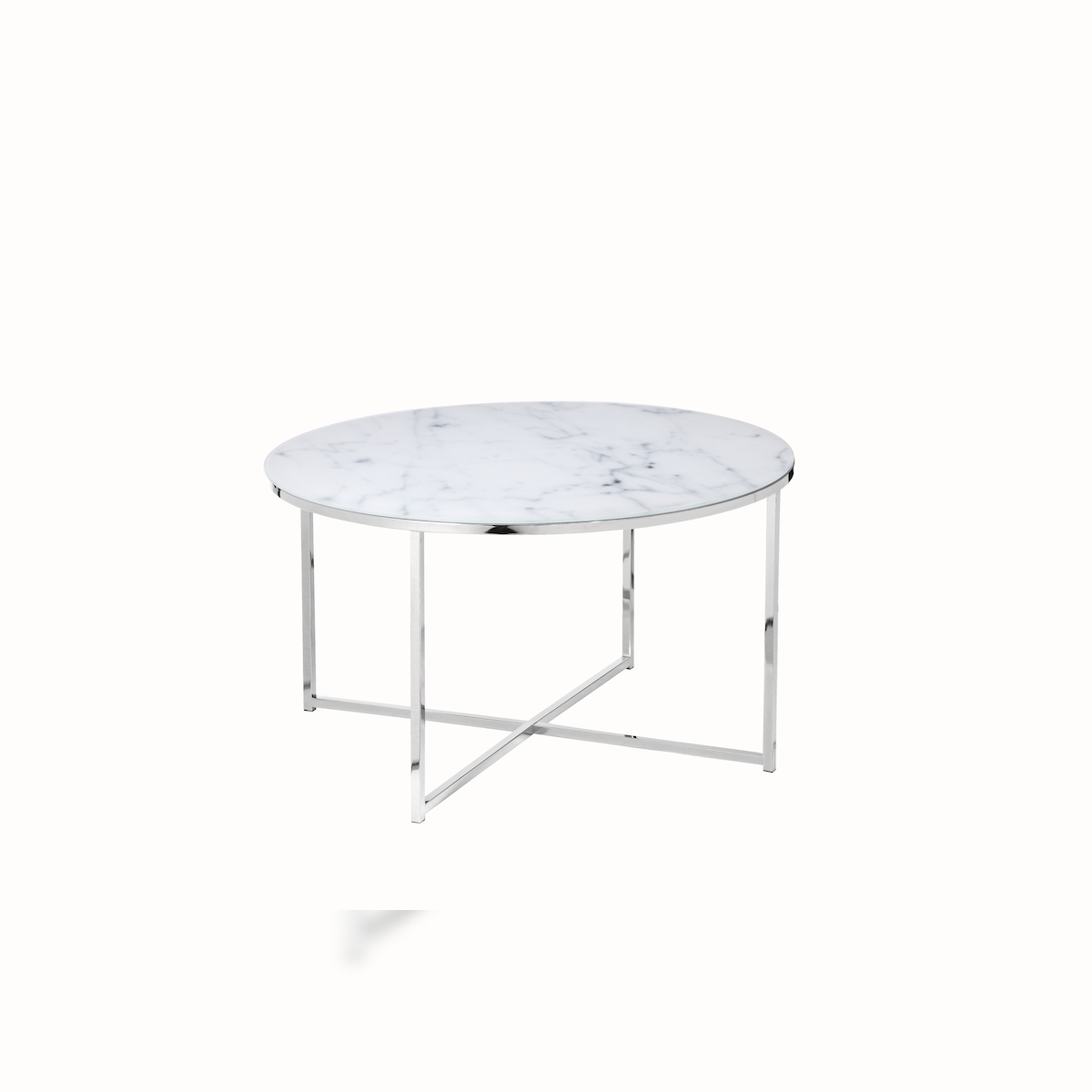 SalesFever Couchtisch 80 cm | Glasplatte foliert in Marmor-Optik | Gestell Metall | B 80 x T 80 x H 45 cm | weiß-chromfarben