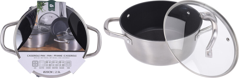 Aluminium-Kasserolle, geeignet für Gas, Elektro, Induktion und Backofen (20 cm Durchmesser)