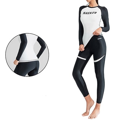 Per donna Rash Guard in 2 pezzi Pantaloni da bagno Maglietta da surf Con lettere Color-blocking UPF50 Traspirante Manica Lunga Mute da immersione Surf Canoa Snorkeling Inverno