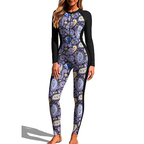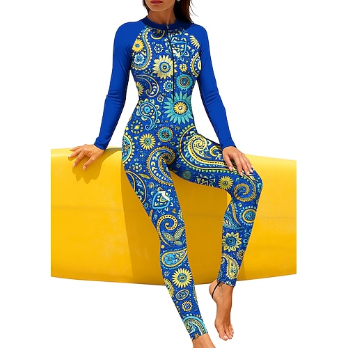 Per donna Costume da Bagno Rash Guard Floreale Protezione Solare UV UPF50 Asciugatura Rapida Spandex Manica Lunga Costume da Bagno Costume da bagno 2 Pezzi Cerniera Frontale Surf Spiaggia Sport