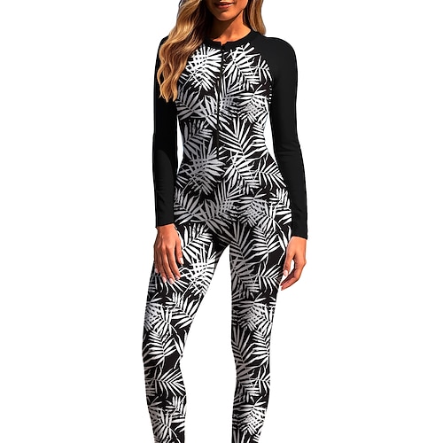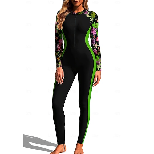 Per donna Muta da Immersione Rash Guard Costume da bagno Costumi da bagno sportivi Floreale Tropicale UPF50 Asciugatura Rapida Leggero Manica Lunga Maglia da nuoto Con zip Cerniera Frontale Surf