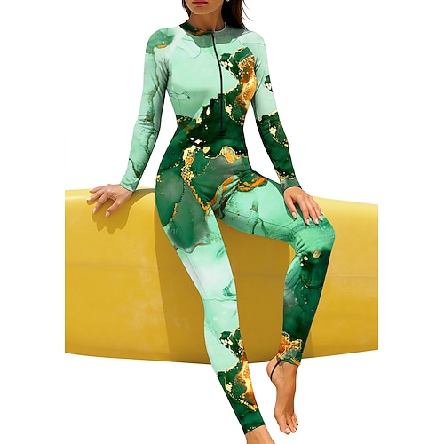 Per donna Costume da Bagno Rash Guard Stampato Protezione Solare UV UPF50 Asciugatura Rapida Manica Lunga Costume da Bagno costume da bagno Cerniera Frontale Surf Spiaggia Sport Acquatici Estate