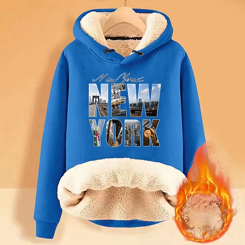 Per donna Felpa con cappuccio Grafico Lettera Caldo Casual Pile Sherpa Manica Lunga Con Cappuccio Top lunghi Streetwear Abbigliamento Quotidiano Casuale Stampato Foderato in pile Rosa scuro Blu Grigio