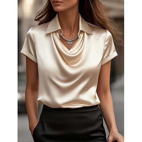 Per donna Camicia in raso Camicia elegante Blusa Tinta unica Elegante Moda Casual Manica Corta Collo ripiegato Top Regolari Quotidiano Ufficio Lavoro Blu Nero Bianco Giallo Grigio Estate Primavera