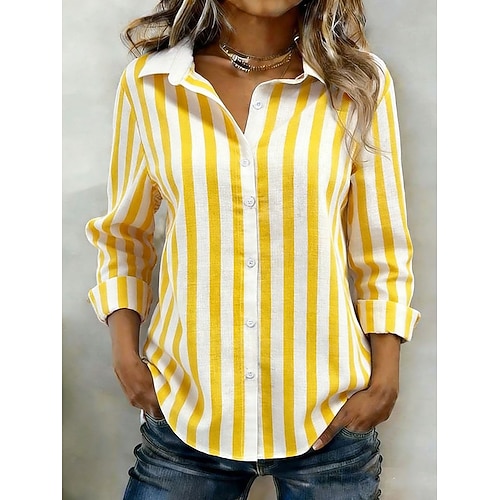 Per donna Camicia Bottoni Stampato Grafico A righe Elegante Vintage Tropicale Manica Lunga Colletto a Camicia Top lunghi Quotidiano Lavoro Blu Nero Giallo Verde Estate Primavera Autunno