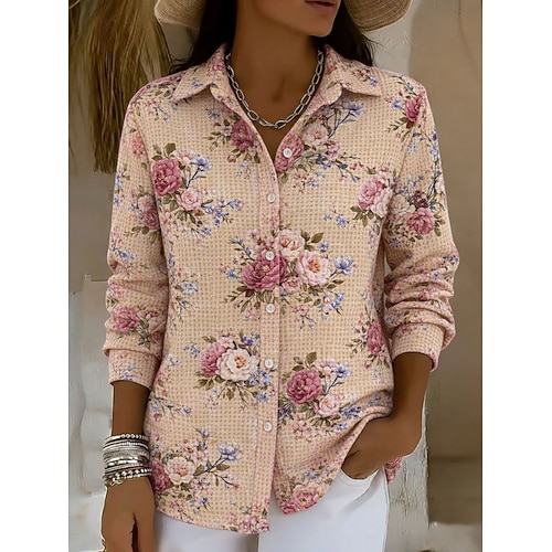 Per donna Camicia Floreale Grafico Elegante Essenziale Casual Manica Lunga Colletto a Camicia Top Regolari Quotidiano Lavoro Blu Rosso Viola Marrone Verde Primavera Autunno Inverno