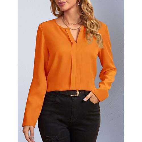 Per donna Camicia Pizzo Taglio Bottoni Semplice Quotidiano Elegante Essenziale Manica Lunga Colletto a Camicia Top Regolari Quotidiano Lavoro Ferie Arancione Primavera Autunno
