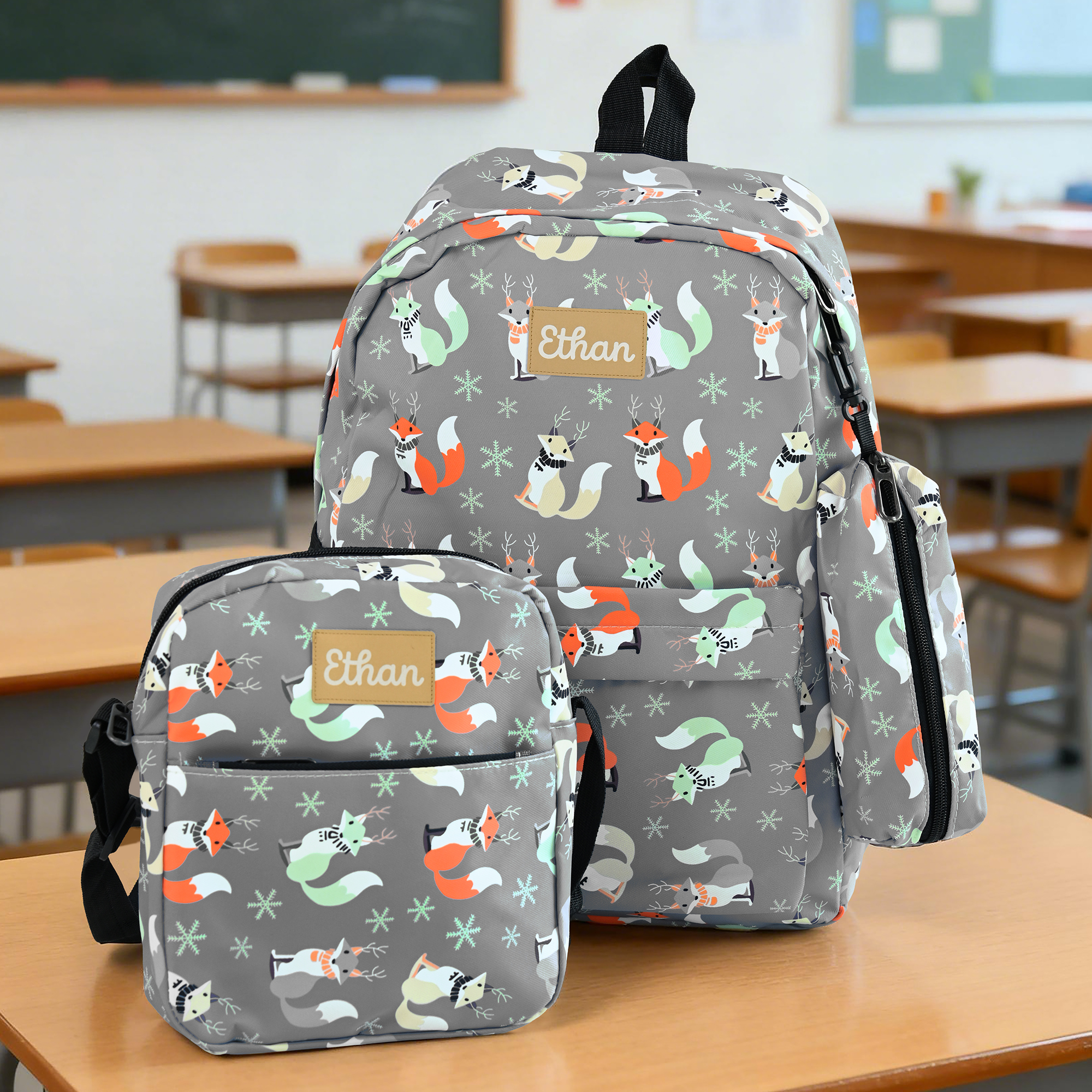 Personalizzato carino animale Zaino regolabile Borsa pranzo Portamatite con nome Ritorno a scuola Regalo di compleanno per bambini