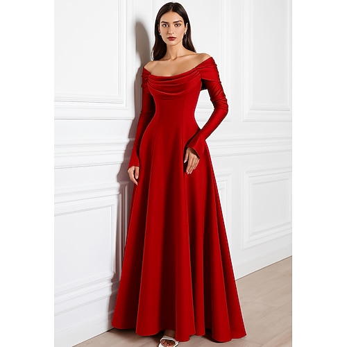 Linea ad A Lunghezza al pavimento Abito da Sera Da principessa Abito formale Elegante Setoso Manica Lunga Senza Spalle Matrimonio Formale Tasca Raso con Tasca
