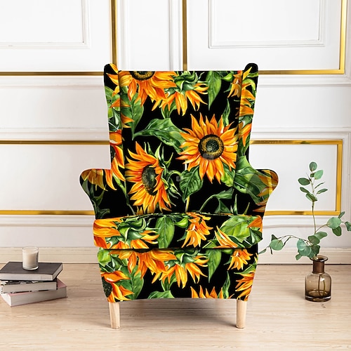 Copripoltrona con schienale alto, copripoltrona in poliestere con stampa geometrica a righe e motivi floreali, copripoltrona pieghevole alla moda, copripoltrona