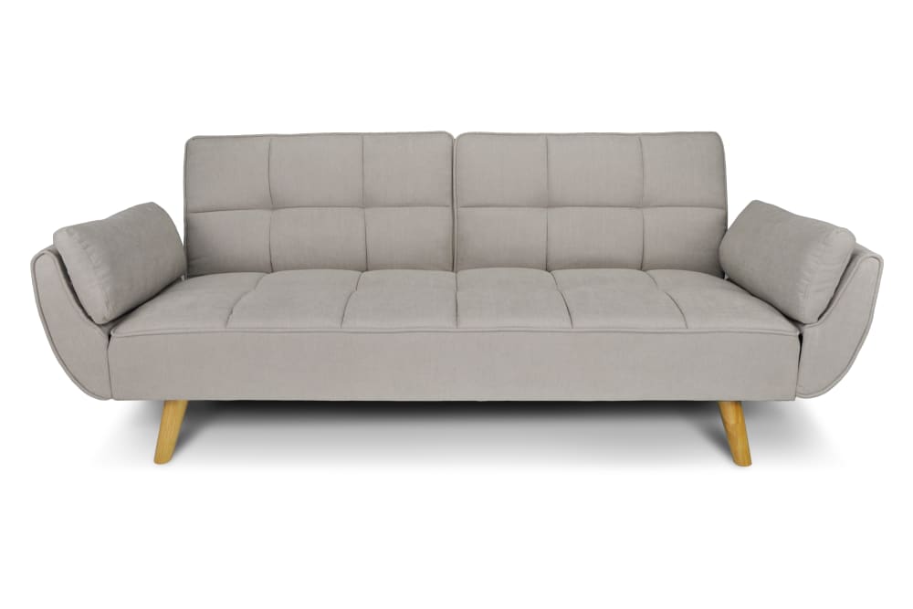 Divano letto clic clac in tessuto vellutato tortora piede naturale