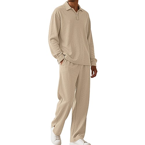 Per uomo Maglia da golf Polo da Golf Lavoro Casuale Bavero Manica Lunga Essenziale Moderno Semplice Jacquard 2 Pezzi Primavera Autunno Vestibilità regolare Nero Cachi Azzurro chiaro Grigio Maglia da