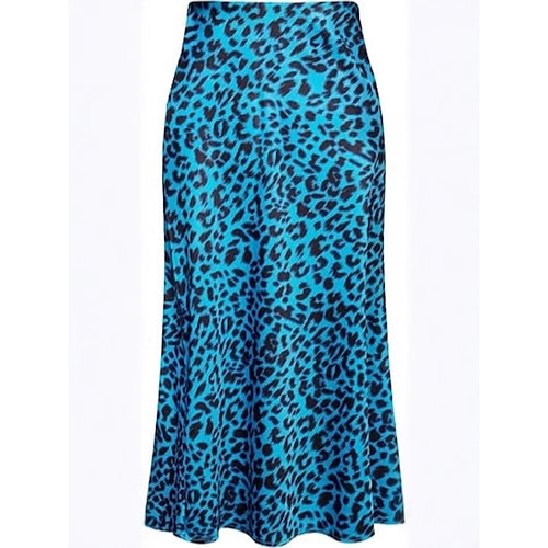 Per donna Elegante Midi Vita Alta Gonne Leopardo Arricciato Inelastico Streetwear Data Blu pavone Bianco Cachi Rosso rosa Estate Poliestere