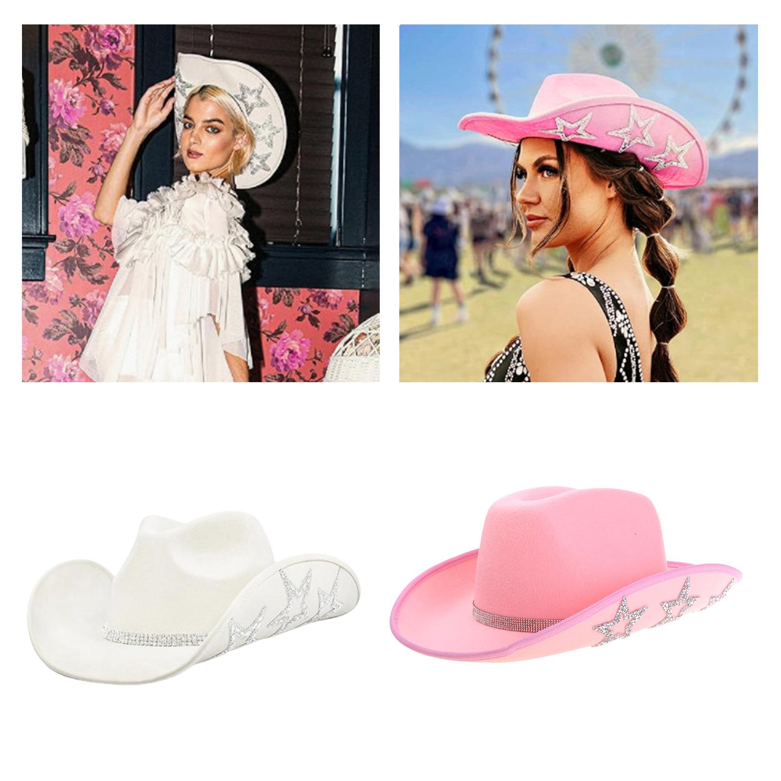 Curved Brim Cowboy Hat with Rhinestone Star Pattern for Christmas Banquet Party Cowgirls Hat for Adult Taking Photo black