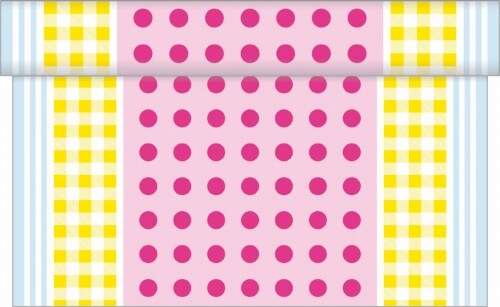 Sovie HOME Tischläufer Willi in Gelb-Rosa aus Linclass® Airlaid 40 cm x 4,80 m, 1 Stück - Punkte Karo Streifen