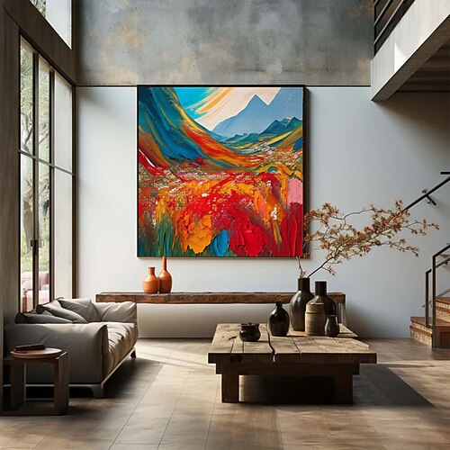 dipinto a olio dipinto a mano astratto fiore paesaggio dipinto a olio su tela grande arte murale originale arte di montagna colorata decorazione primaverile soggiorno moderno arredamento per la casa