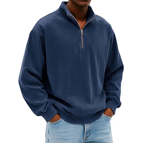 Per uomo Maglia Velluto a coste Felpa con cappuccio Maglione Felpa con zip corta Blu Blu denim Nero Bianco Blu marino Colletto Mao Semplice Cerniera Testurizzato Casuale Quotidiano Sport Outdoor