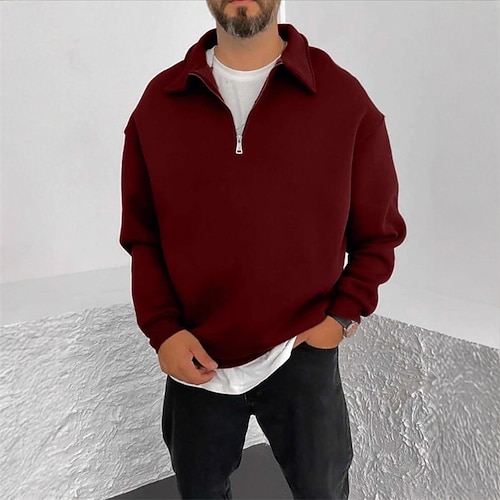 Per uomo Maglia Maglione Felpa con zip corta Rosso bordeaux Nero Blu marino Grigio scuro Beige Mezza zip Semplice Sport Outdoor Casuale Quotidiano Streetwear Essenziale Casual Autunno Inverno