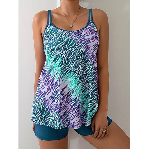WOMEN'S TANKINI 2 PEZZI COSTUME DA BAGNO ALTA VITA SENZA SCHIENA VACANZA AL MARE STAMPA GRAFICA OMBRE COLLETTO A U SENZA MANICHE