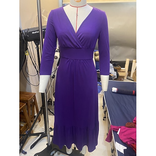 Maxi abito casual da donna con scollo a V e maniche a 3/4